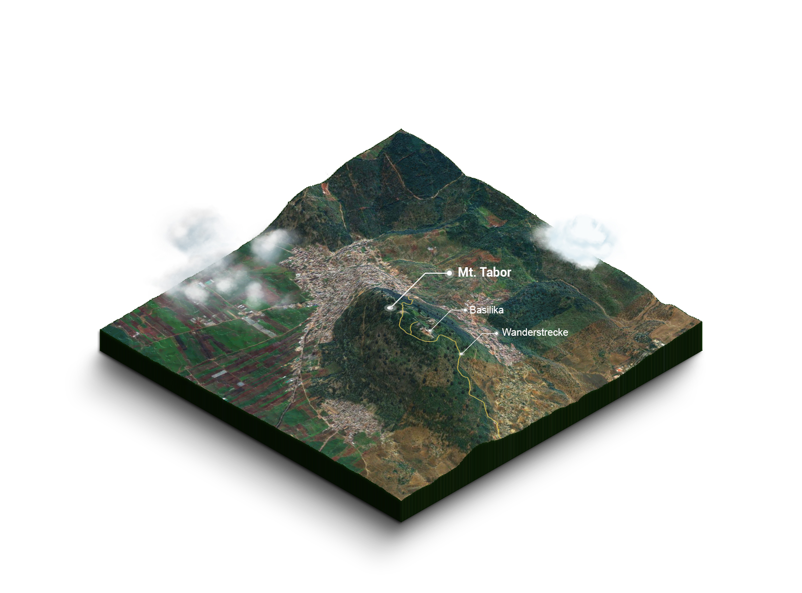 Der Berg Tabor befindet sich im Norden Israels und ist etwa 575 Meter hoch. Es ist ein einzelner Berg, der sich aus der umliegenden Landschaft erhebt und daher eine atemberaubende Aussicht bietet. Der Berg Tabor ist in der Bibel erwähnt und wird als einer der heiligsten Orte der Christenheit angesehen.